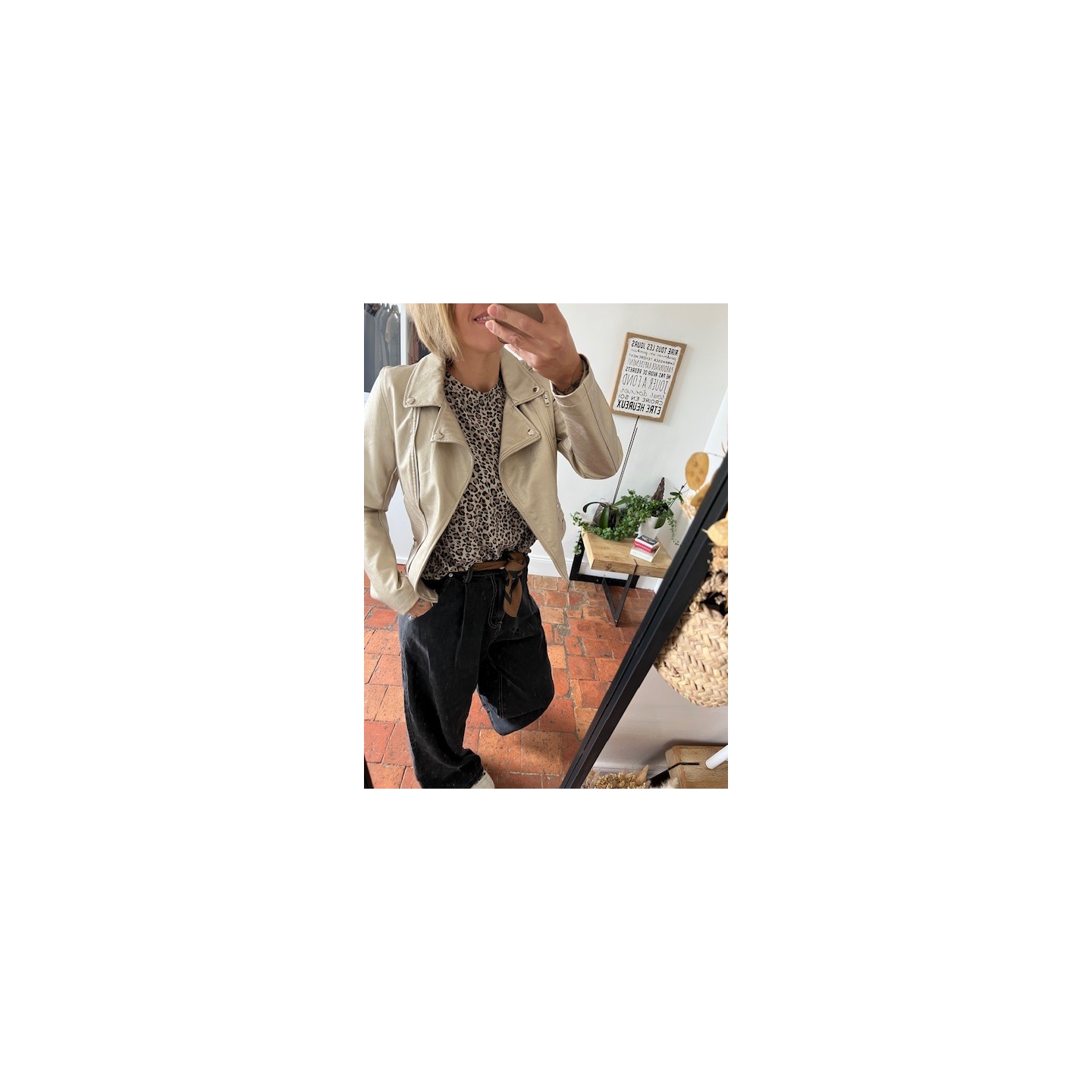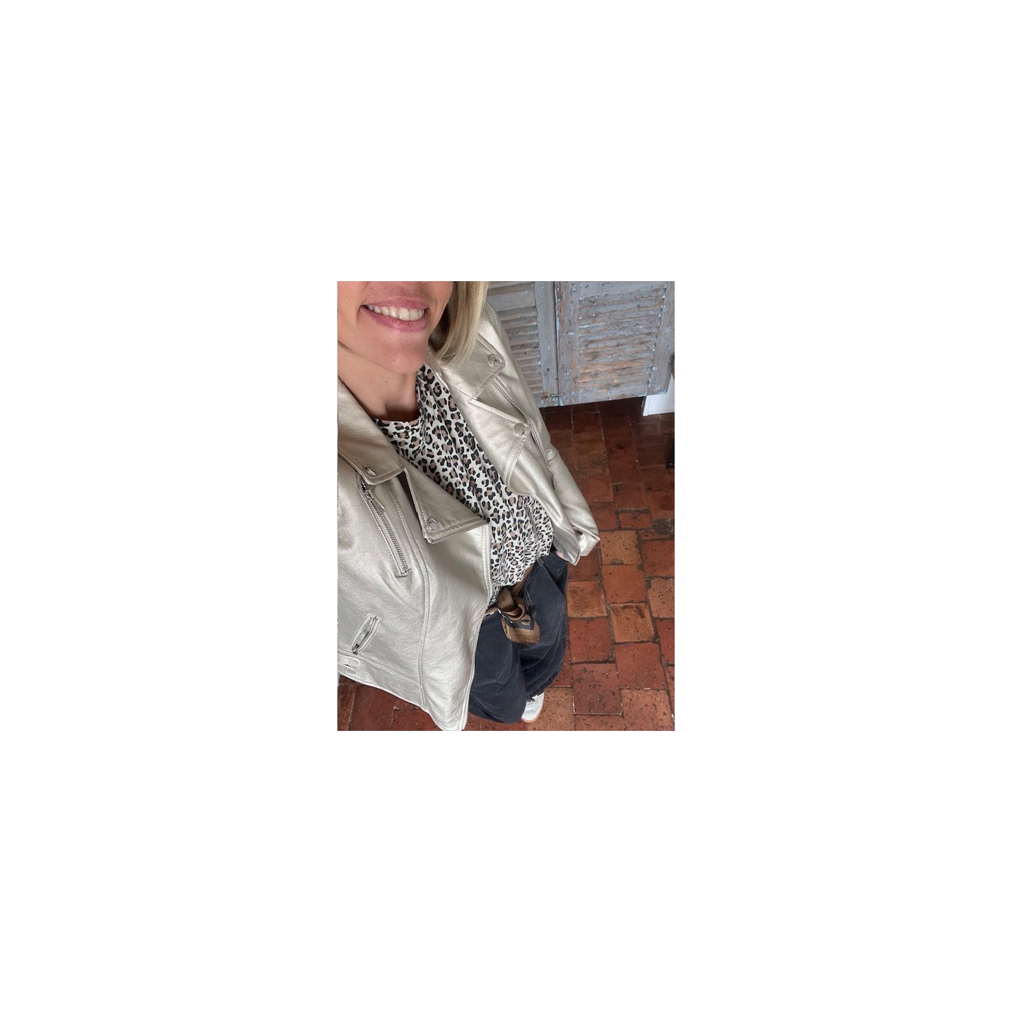 Affirme ta personnalité avec ce t-shirt léopard , parfait mélange entre audace etb confort.Son imprimé animalier tendance fait de lui une pièce forte, idéale pour rehausser un look simple  ou créer une tenue 100% assumée. Sa coupe. moderne ou oversize selon votre style et votre taille - vous permet de le porter avec un jean , une jupe ou un short pour un look casual chic, urbain voir rock selon les accessoires .Je le porte avec plusieurs looks , pantalon MAEL  et son foulard , le gilet Beige , ou le perfection Gold