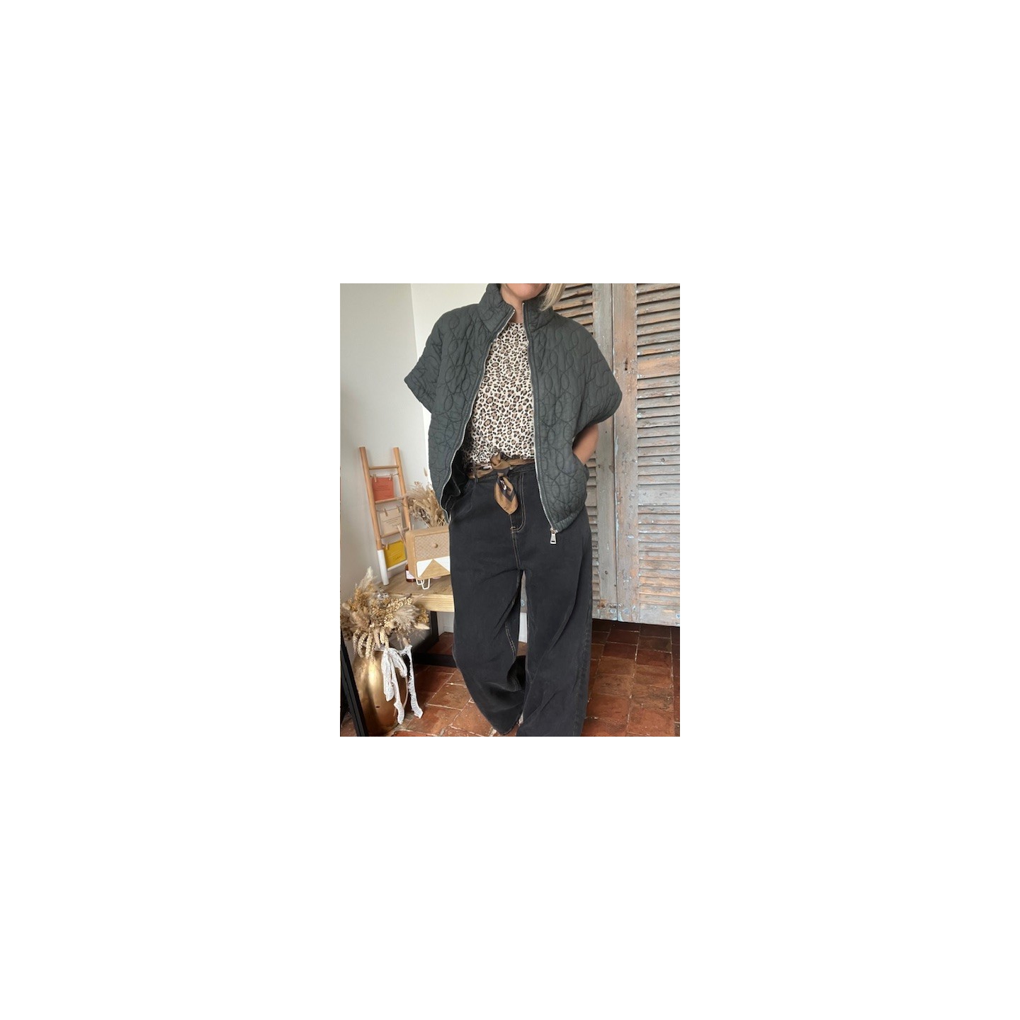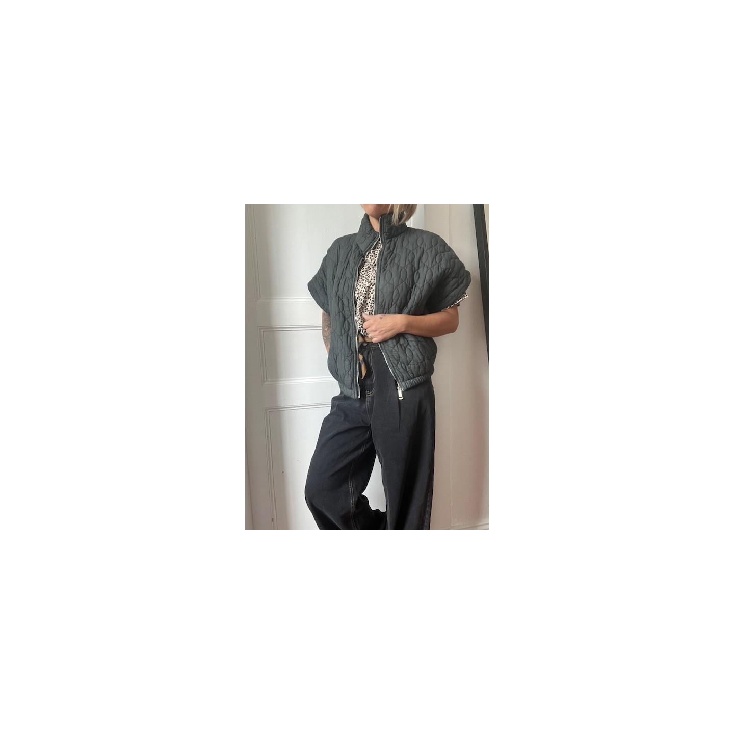 Son matelassée subtil apporte juste ce qu'il faut de chaleur, sans alourdir la silhouette .Une pièce polyvalente, parfaite pour un style urbain, streetwear ou casual chic .A porter sur un t-shirt , un sweat ou même une veste simili ou jean pour un contrastes de matière.Je la porte avec le jean MAEL et le t-shirt léopard (dispo sur le site )