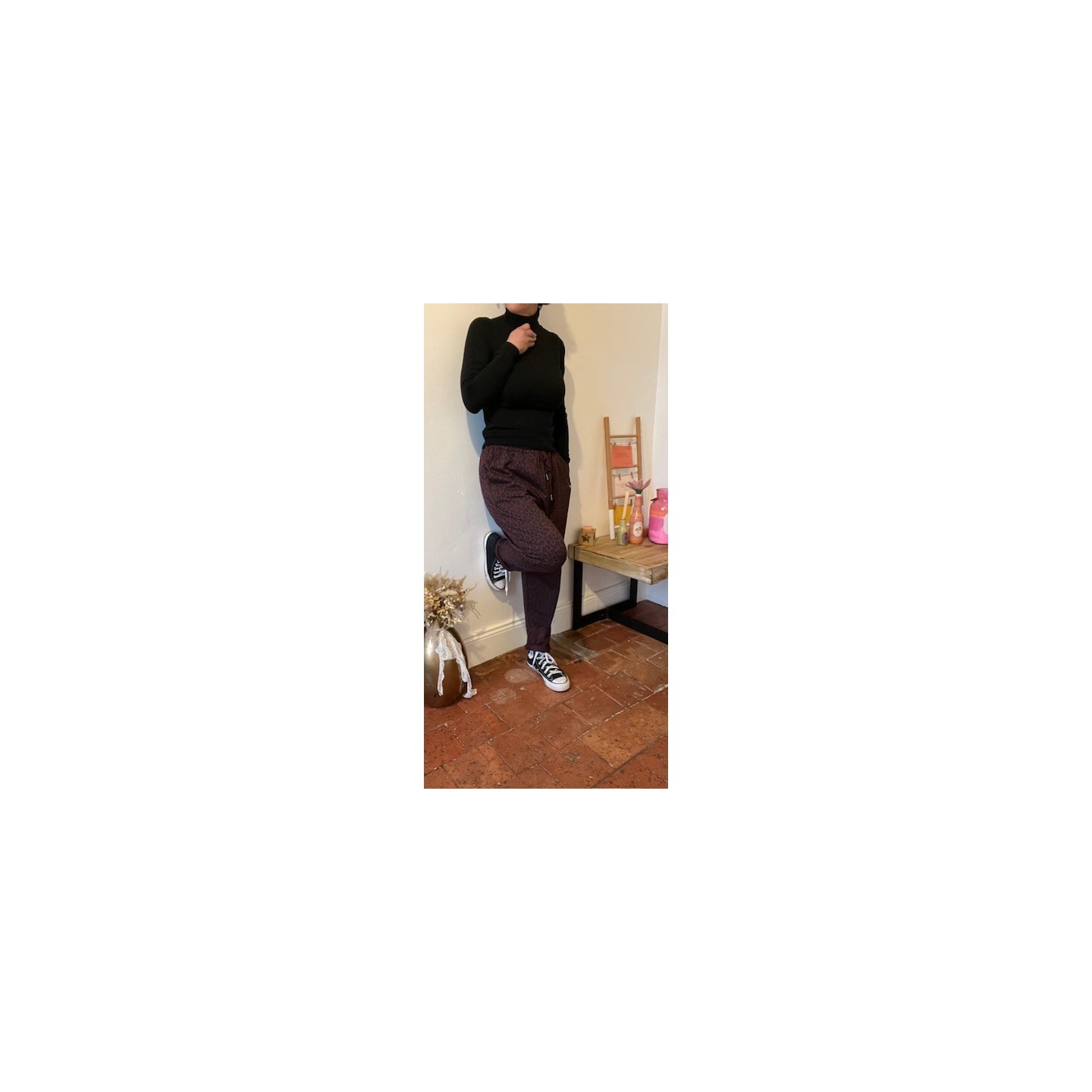 Pantalon jogger à taille élastique , coupe confortable avec le lien de serrage et poches cotés .Ourlets retroussés et petite broderie sur la hanche pour une touche féminine .Idéla au quotidien , à porter aussi bien décontracté que chic avec un chemise et un perfecto .