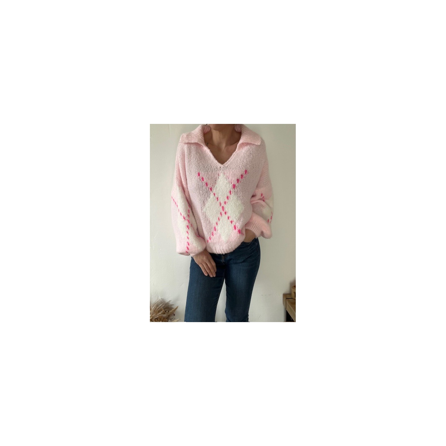 Le pull Rose à motif jacquard est la pièce tendance qui apporte douceur et modernité à votre dressing.Son col à plat structure délicatement le haut du buste et ajoute une touche élégante et actuelle .