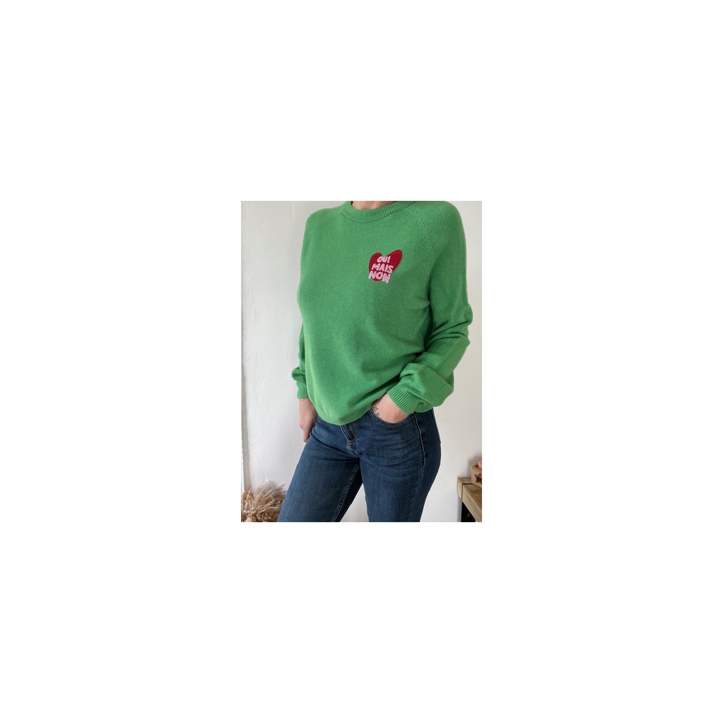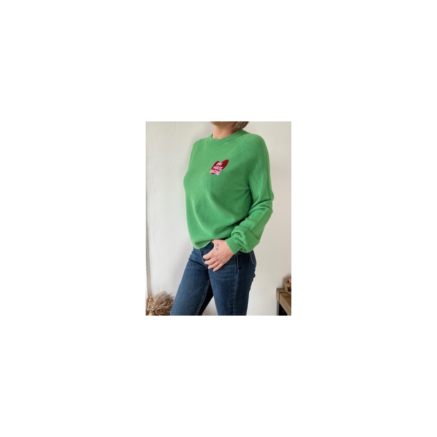 Plonge dans un confort absolu avec le pull OUI mais NON .Sa coupe intemporelle et ses finitions soignées en font une pièce essentielle à votre garde-robe .Il est parfait en association avec un jean , une jupe avec un petit perfecto .